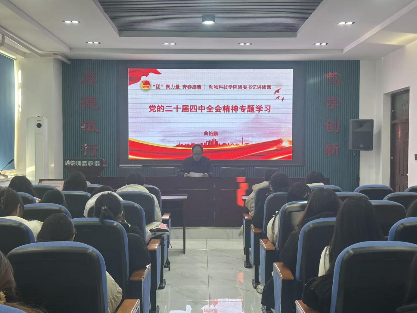 课上,学院团委书记曲艳鹏结合生动的案例、翔实的数据以及青年学生关注的热点问题,紧紧围绕党的二十届四中全会的主要议程、重大意义和核心成果进行了解读。他引导学生,一要筑牢信仰之基,做全会精神的“坚定践行者”。要深入学习领会党的二十届四中全会精神对于青年坚定理想信念、明确奋斗方向的重要意义。要清晰地认识到自身专业在服务国家重大战略需求、保障粮食安全、促进农业强国建设等方面的重要责任。二要锤炼过硬本领,做时代发展的“奋进追光者”。要践行社会主义核心价值观,将“小我融入大我”,把个人理想与民族复兴伟业结合起来,积极参与“助农爱农”“三下乡”等活动,用实践夯实理论知识。强化“本领恐慌”意识,面对科技革命、产业变革的新形势,主动弥补知识短板、能力弱项,以“时不我待”的紧迫感提升自身竞争力。三要厚植担当精神,做中国式现代化的“主动参与者”。要将学习全会精神与自身的学业规划、科研实践、未来发展紧密结合,不断夯实专业基础,培养创新精神,锤炼过硬本领。
