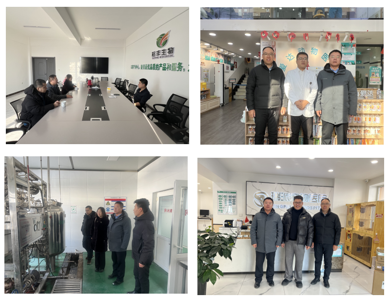 学院党委书记王天亮、院长郑家三等院领导向企业相关人员介绍了学院学科建设、专业特色及人才培养体系,着重就毕业生就业、实习基地建设、校企协同育人等方面与企业展开深入探讨,参观了企业生产车间、药品包装储藏间、手术室、住院部及办公区域等场所。企业负责人详细介绍了企业规模、发展愿景、科技创新、人才需求等相关信息。受访企业对beat365体育官方网站的人才培养质量与科研创新能力给予高度认可,希望与学院在毕业生就业推荐、实习实训等领域建立长期稳定的合作关系,携手为畜牧行业高质量发展培育和输送高素质专业人才。
