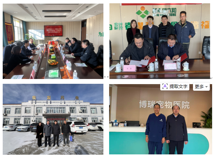 校院领导先后前往大庆六和饲料有限公司、大庆市牧源生物科技有限公司、大庆市天赐饲料有限公司、大庆市裕丰生物科技有限公司、哈尔滨市瑞派爱达动物医院有限公司、哈尔滨市我宠我爱动物医院有限公司、哈尔滨金正动保药品有限公司、昆明市盘龙区博瑞宠物医院、昆明市官渡区安诺宠物医院、内蒙古伊禾绿锦农业发展有限公司、德州优品农业发展有限公司、广东中迅农科股份有限公司等企业,实地了解企业实际运营情况,了解学院教师担任科技总师服务情况,收集用人招聘信息,并与部分企业签订了就业基地建设协议。