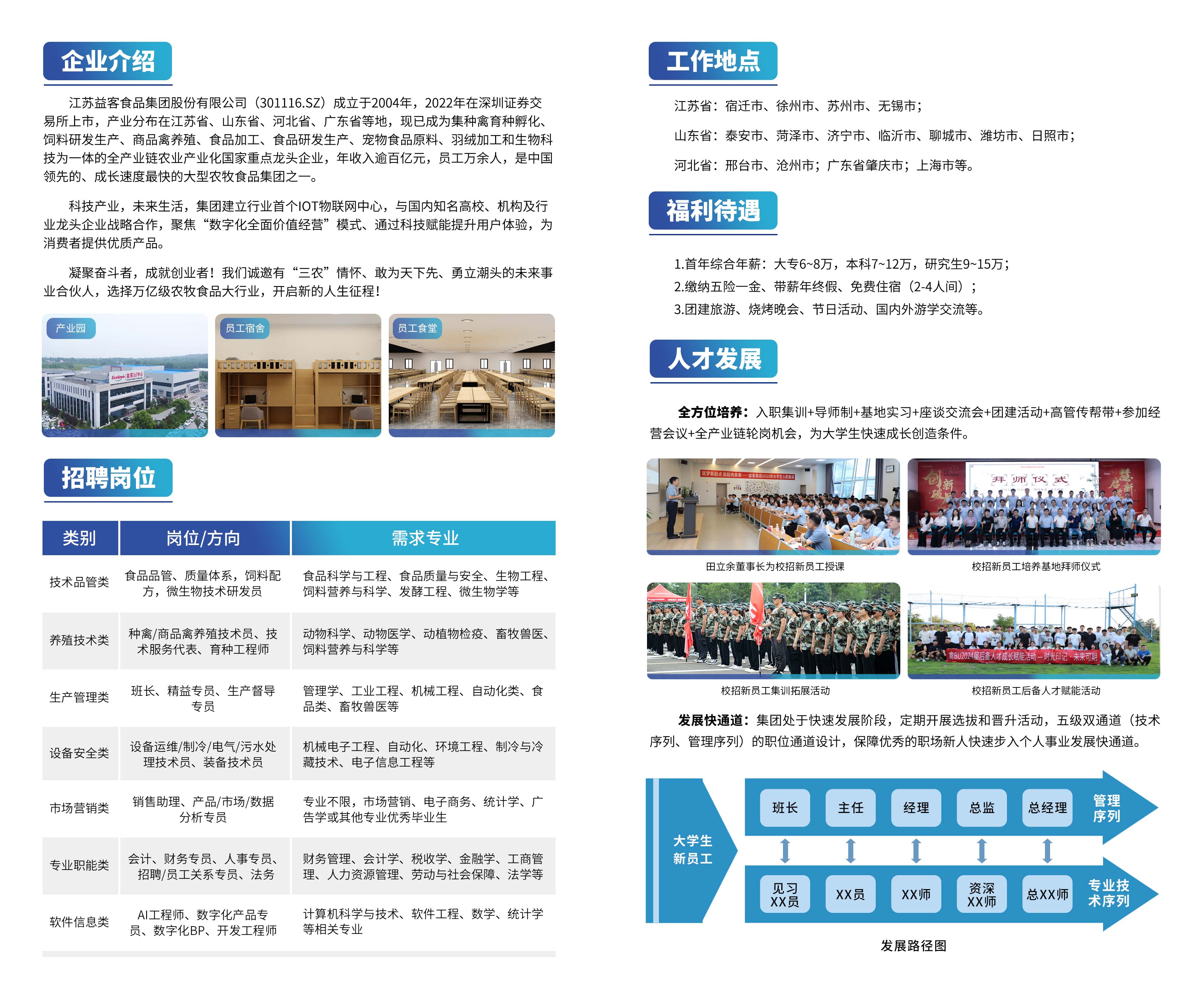 养殖技术类 | 种禽/商品禽养殖技术员、技术服务代表、育种工程师、兽医 | 动物科学、动物医学、动植物检疫、畜牧兽医、饲料营养与科学、智慧牧业科学与工程等相关专业 |